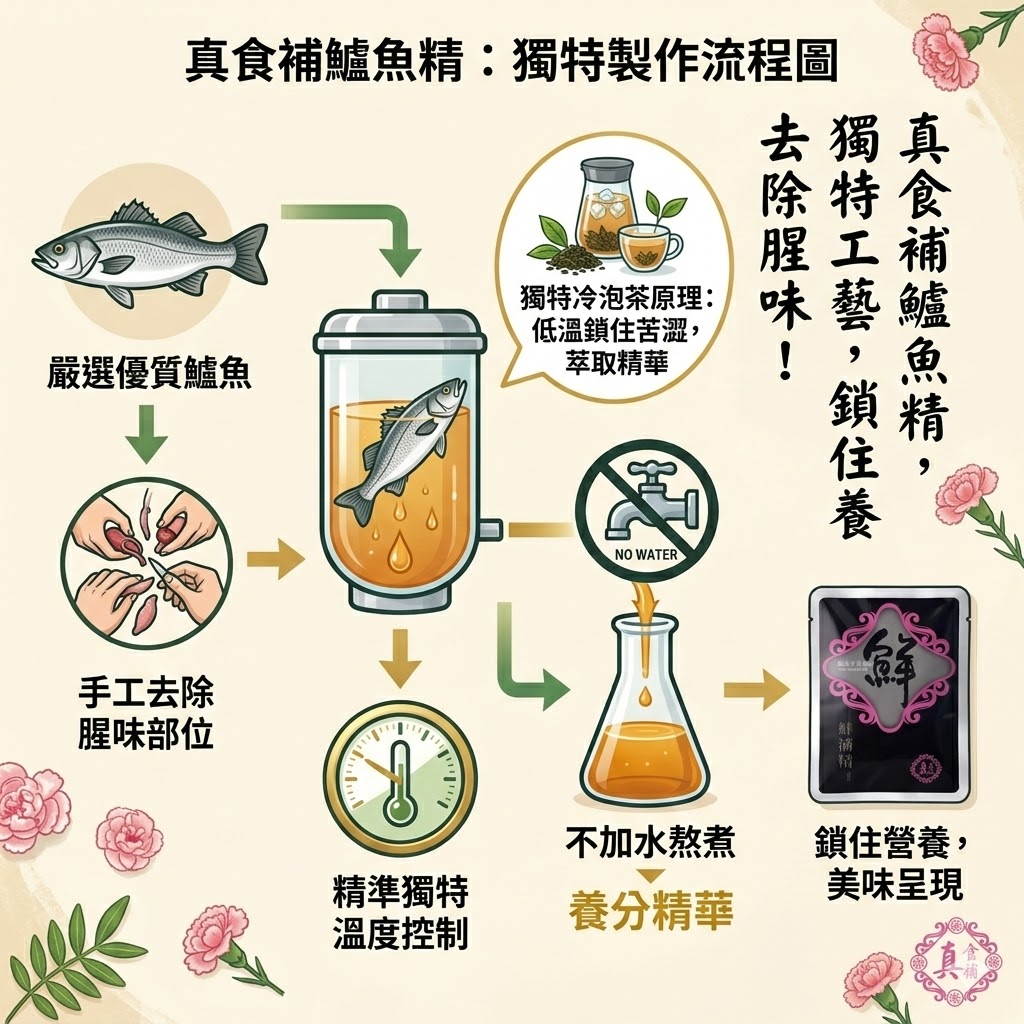 多年來,許多客人問我們,為什麼真食補鱸魚精這麼好喝,完全沒有魚腥味?其實,這個問題既複雜也簡單。