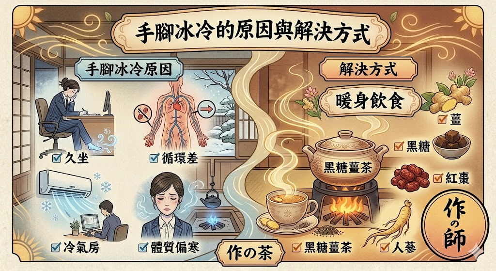 再加上現代生活中許多人長時間待在冷氣房或久坐,容易讓四肢循環較差,因此更容易出現手腳冰冷的情況。