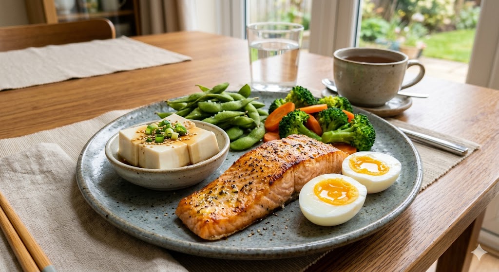 這點極為重要!許多長輩早餐只吃稀飯配醬瓜(零蛋白質),晚餐才吃大量肉類。 研究顯示,單次攝取超過 30-40 公克蛋白質,身體合成肌肉的效率會遇到瓶頸,多餘的會被排出或轉為脂肪。 正確做法: 將每日所需的 72 公克,均勻分配成三餐,每餐 24 公克。這能持續刺激肌肉合成蛋白的運作。