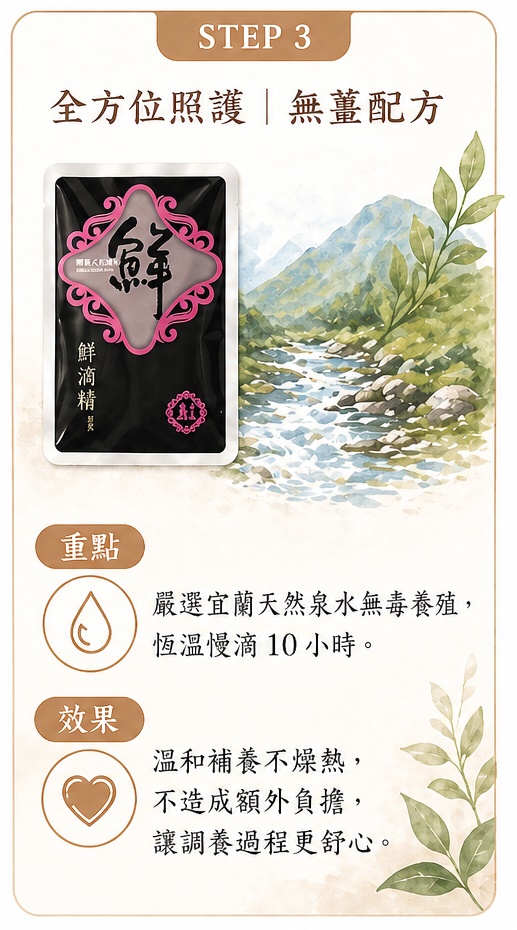 - 低鈉、零脂肪、零膽固醇: 讓補養成為純粹的享受,不增加身體額外負擔。