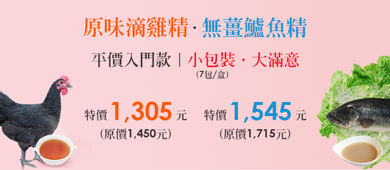 ![]() 【夏日食補.滴黃金蜆精加購活動】 |病中病後補身首選| 選購商品並加入購物車,消費金額若滿2,500元 購物車下方會出現可以加購的產品 滴黃金蜆精(15包/盒), 滴黃金蜆精(7包/盒), 點選我要加購,將產品加入購物車、繼續完成訂單流程即可! ※ 每人每品項僅可加購一盒 ※ 若加購專區未出現產品,代表目前無庫存、已售完