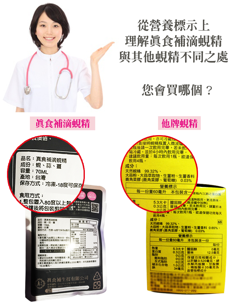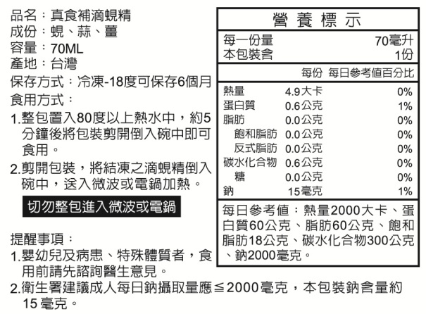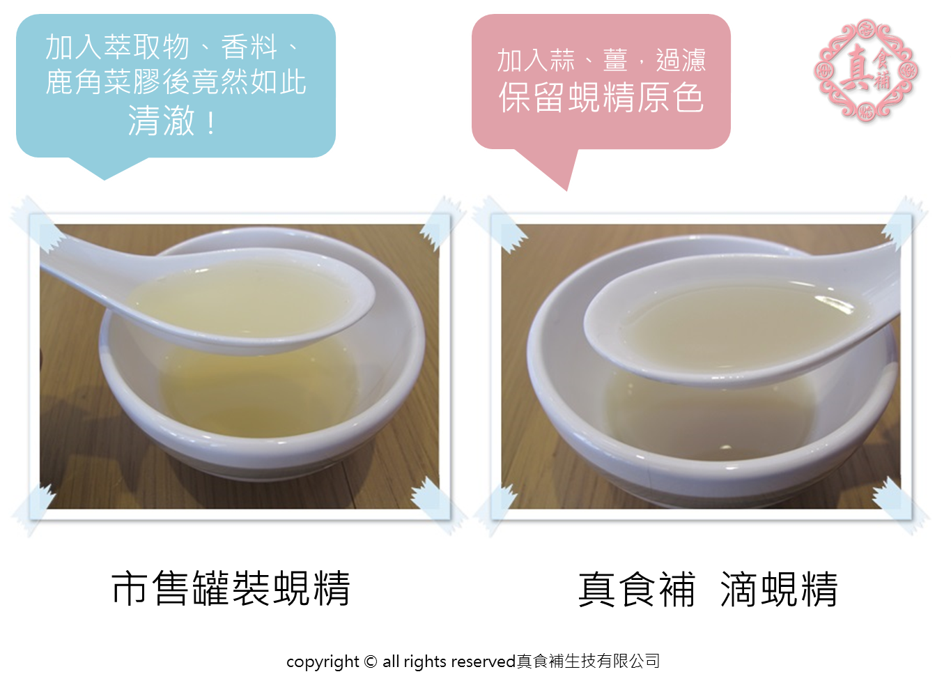 您喝過用「滴」的蜆精嗎? 真食補首創「滴」蜆精,利用蒸氣不回流專業機器,將花蓮玉里黃金蜆的精華「滴」出來。製作過程中,不添加任何一滴水、防腐劑、香料、色素,完整保留黃金蜆的精華,營養價值高,病後補養首選!