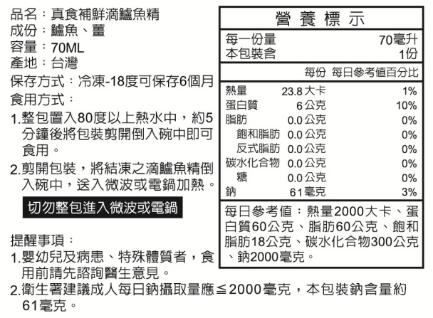2. 鮮滴鱸魚精 (有薑):宜蘭純淨水質的滋養