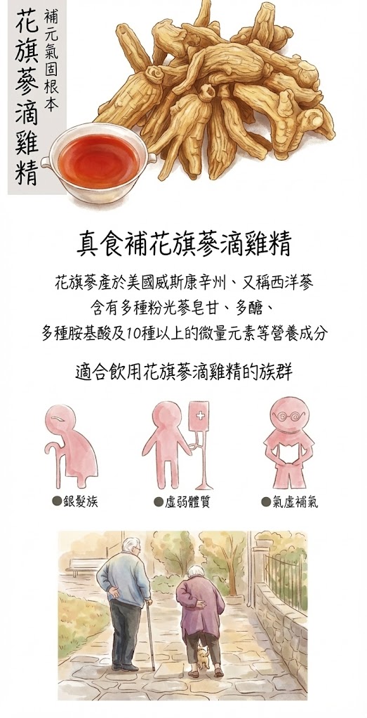 本產品含花旗蔘,非所有人群適合飲用,若有疑慮請先諮詢醫生意見。