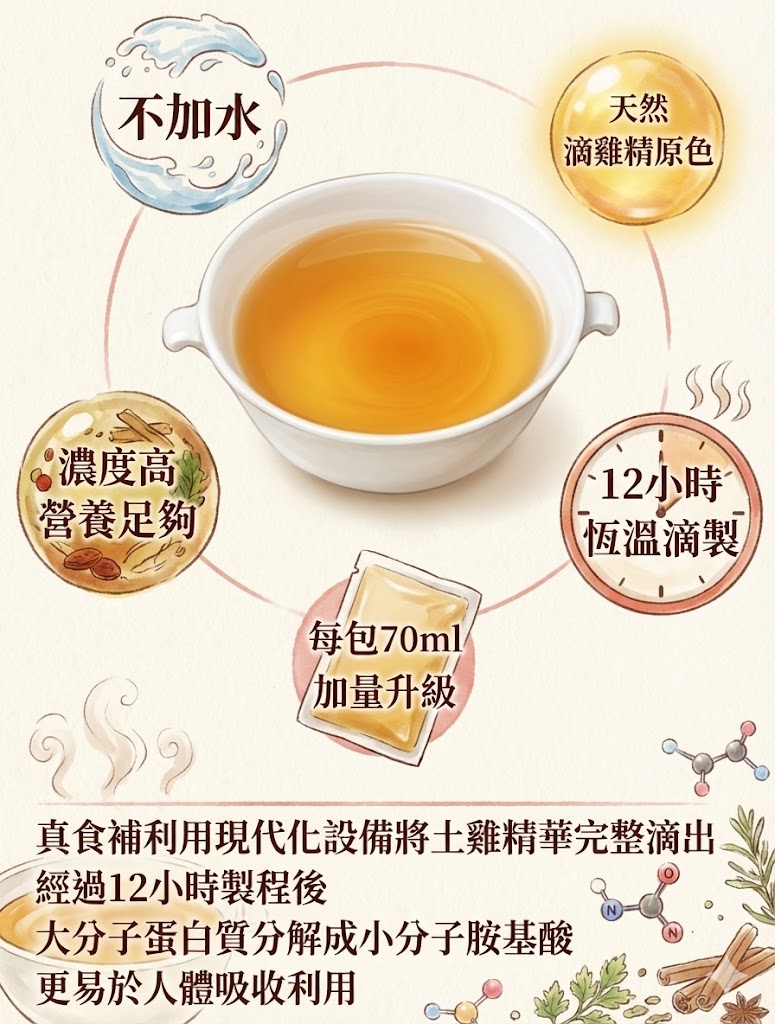 真食補堅持手工除油、保留滴雞精最完整的營養價值