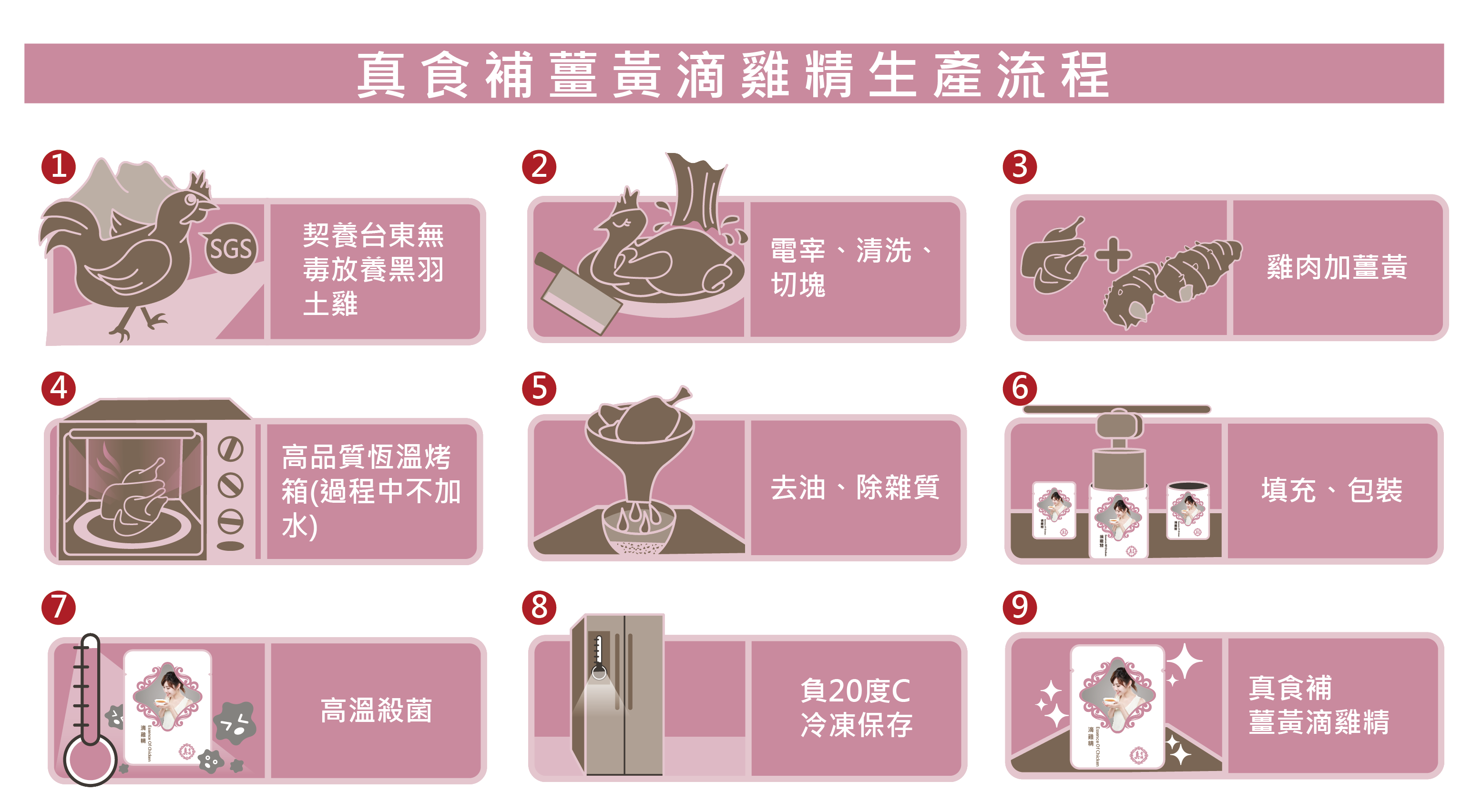 真食補使用飼養天數105-135天的雞,基本上都是生蛋前的年輕雞!青春年華的雞,營養價值最是豐富也最適合拿來製作滴雞精。而所謂的老母雞,其實是已經老到無法產蛋的淘汰雞,其實是已經沒有足夠的營養價值了!(真食補堅持不用老母雞)