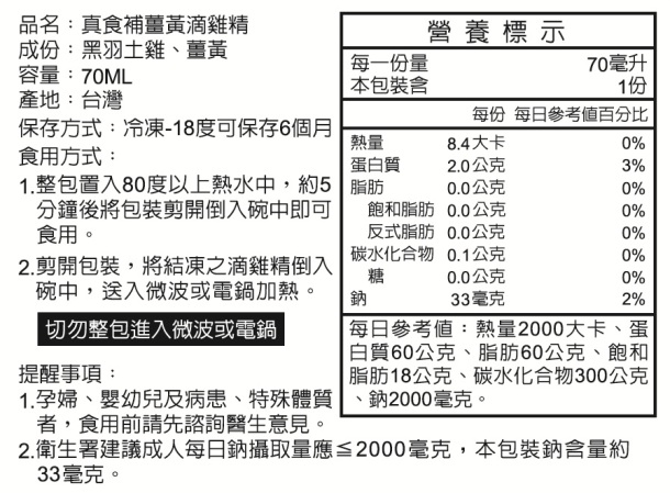 品名:真食補薑黃滴雞精