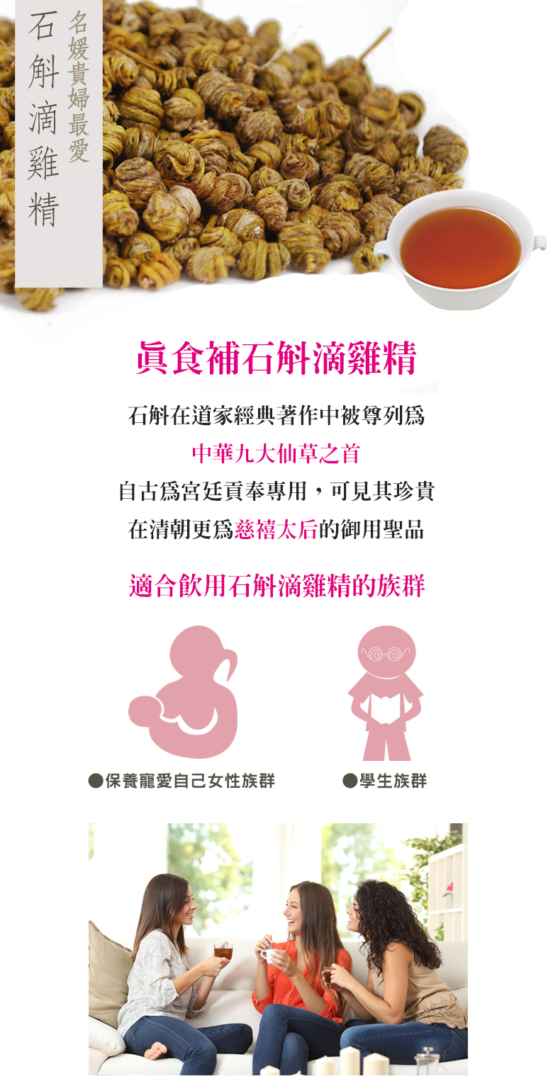 本產品含石斛,非所有人群適合飲用,若有疑慮請先諮詢醫生意見。