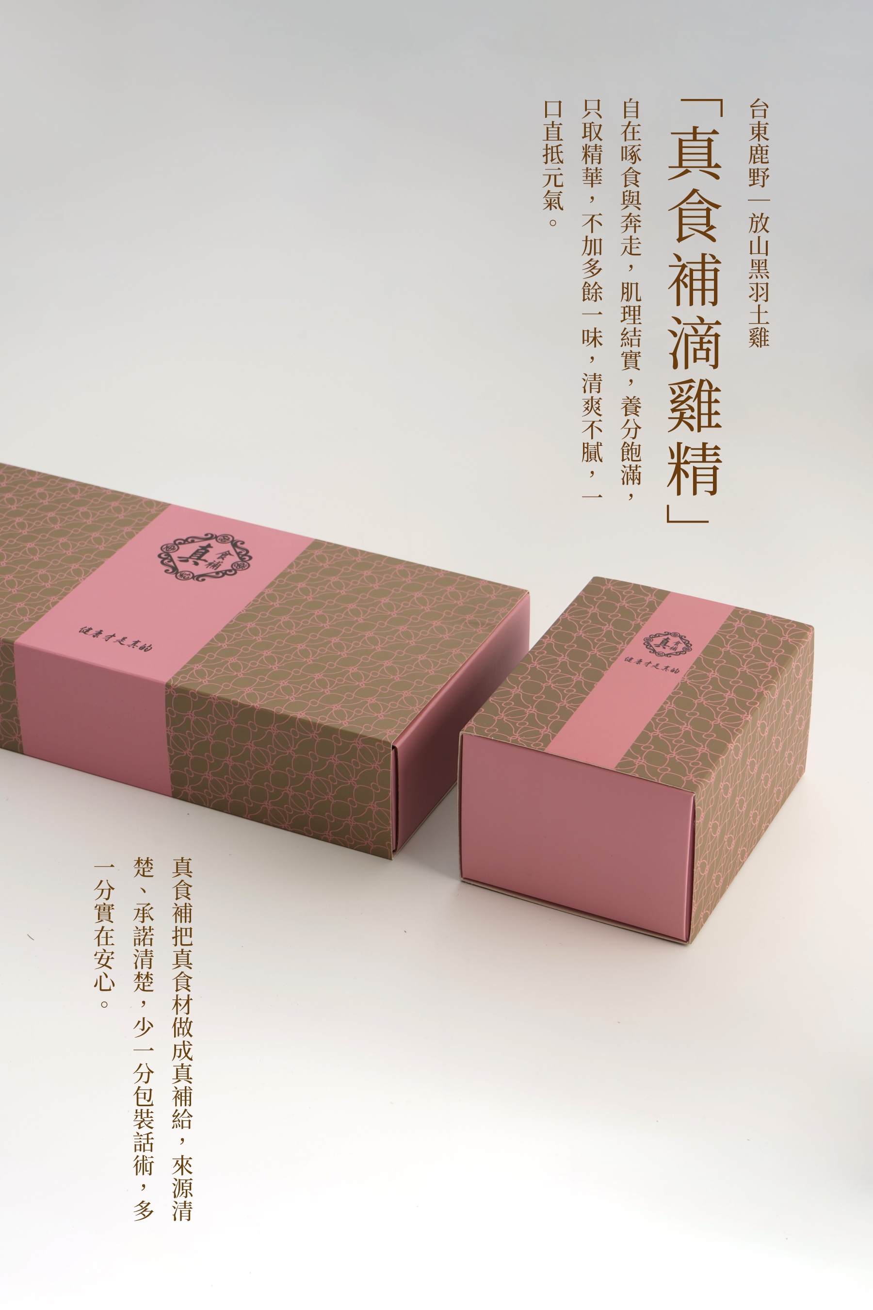 堅持使用「生蛋前的台東鹿野”全放山”黑羽土雞」,絕不使用老母雞或籠養雞,即使成本比業界高一倍以上,我們仍堅信唯有使用最好的原料,才能滴出營養價值最高的真食補滴雞精!真食補長期深耕醫院通路,深獲各界肯定,真食補所有產品均經SGS檢驗,無抗生素或其它藥物殘留,請放心選購。