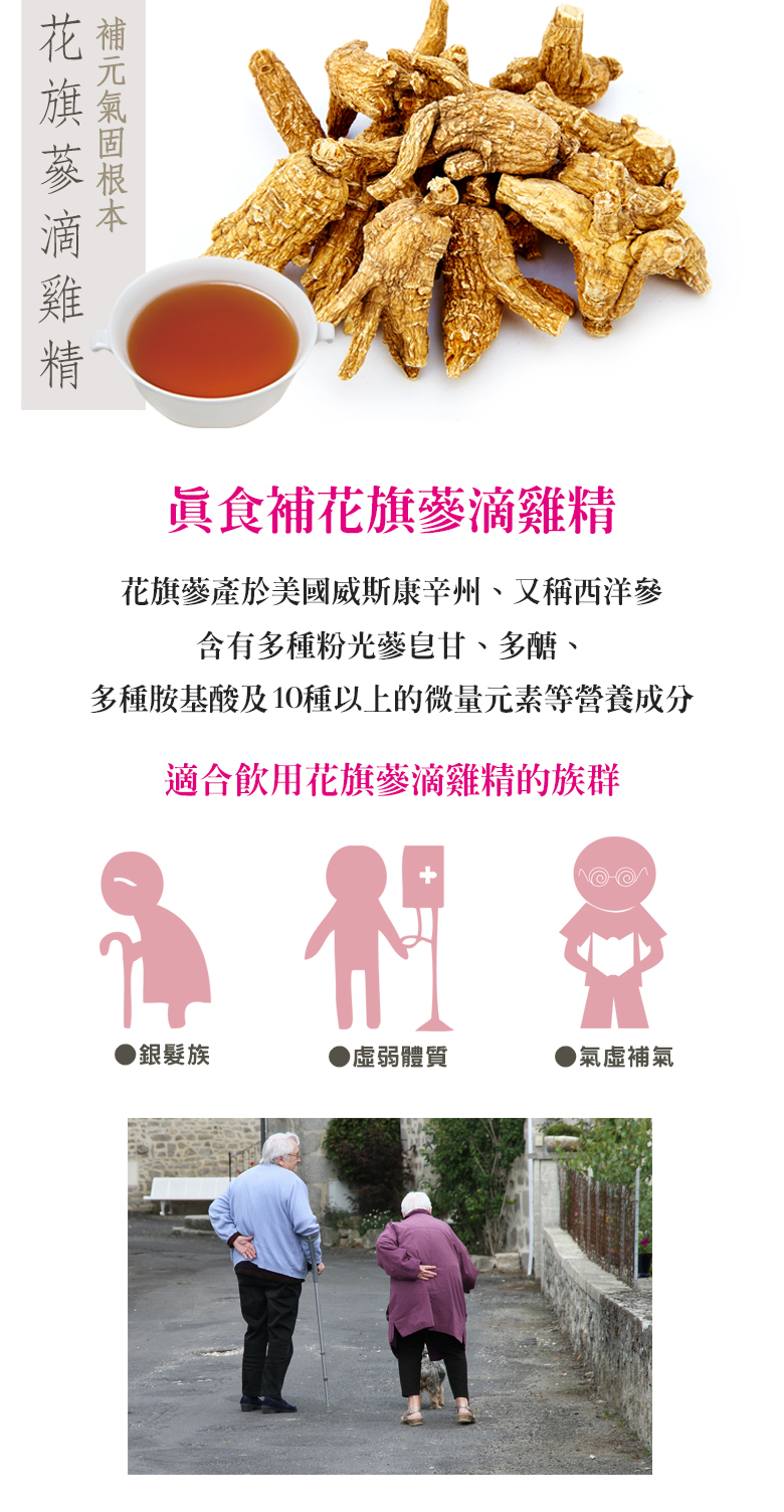 本產品含花旗蔘,非所有人群適合飲用,若有疑慮請先諮詢醫生意見。