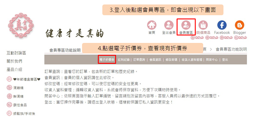 1. 折價券可以在真食補網站中抵用消費、單筆訂單限使用一次。