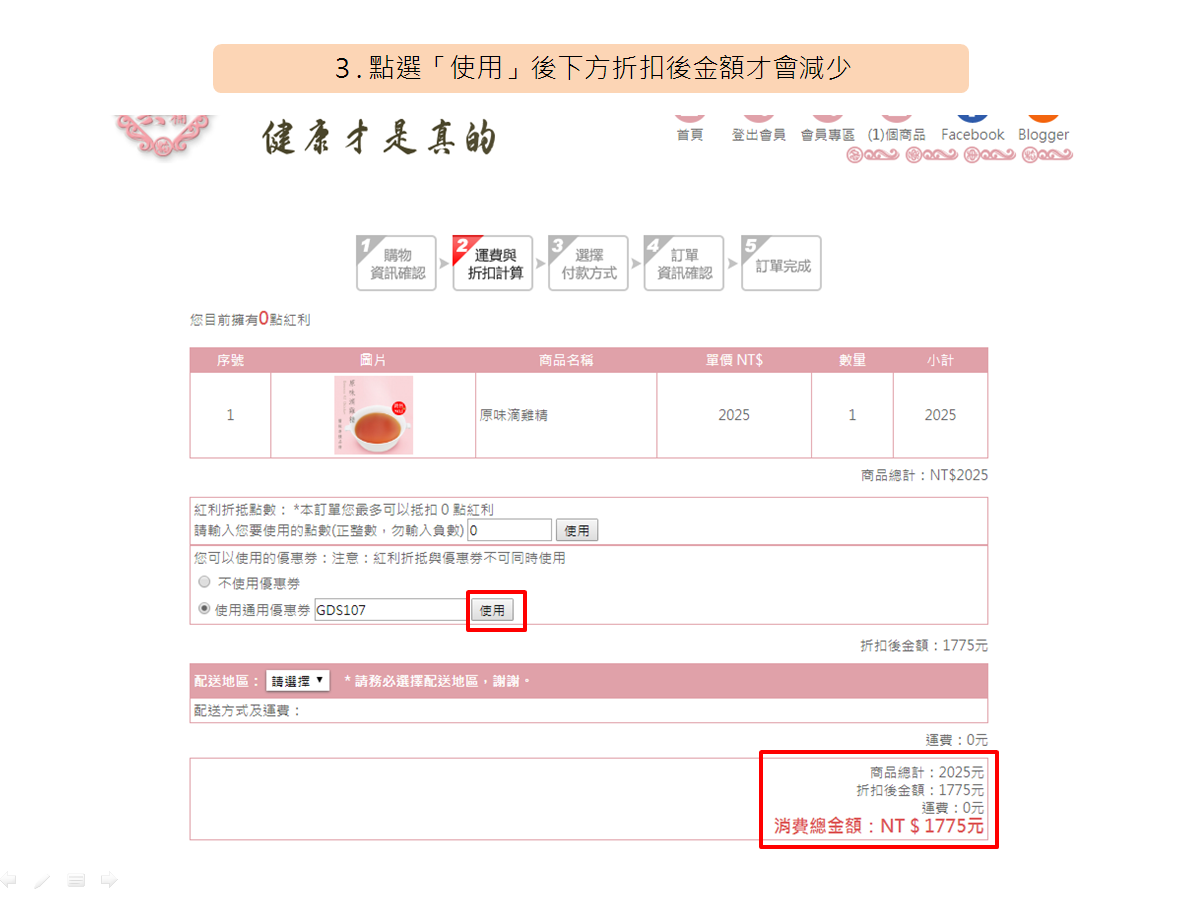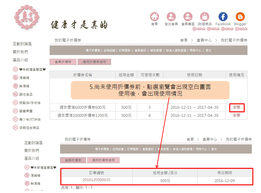 4. 消費者可在商品結帳時選擇折價券抵用。(折價券與紅利點數只能擇一使用)